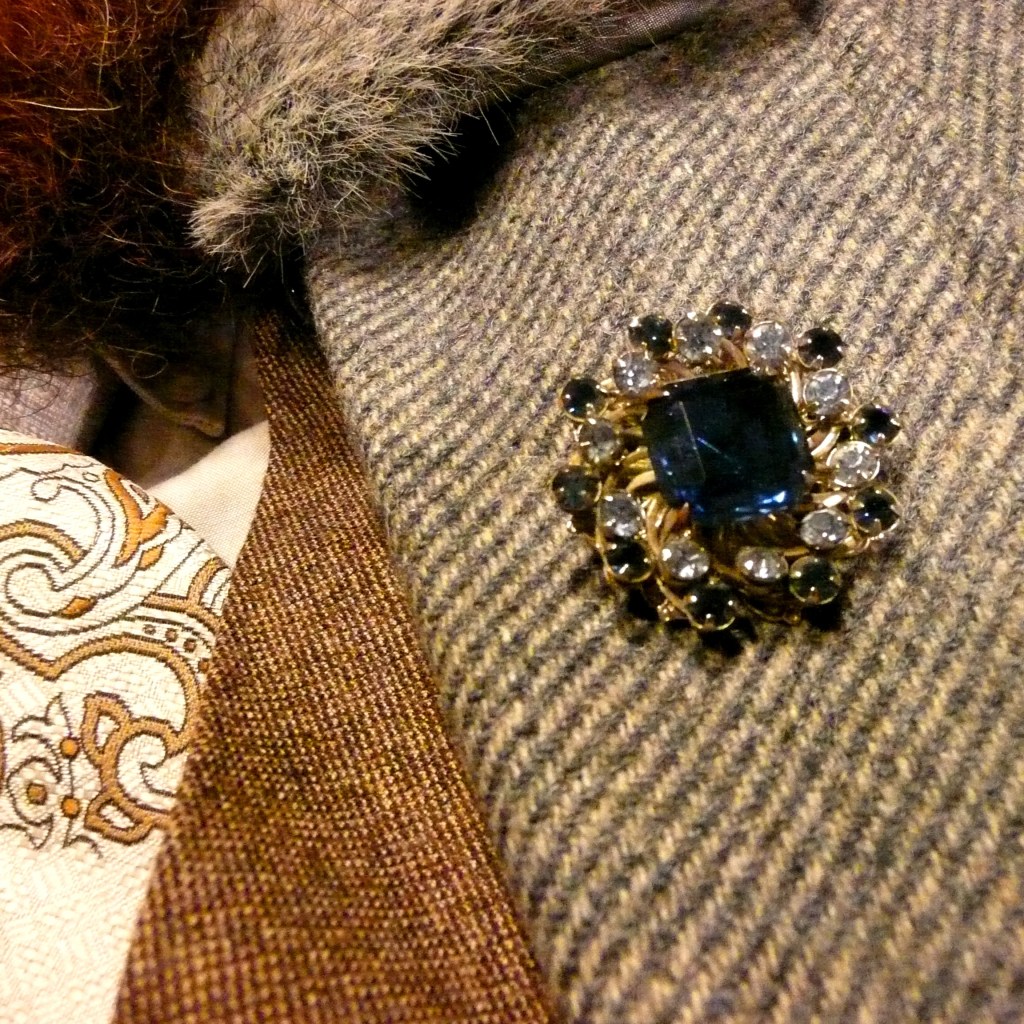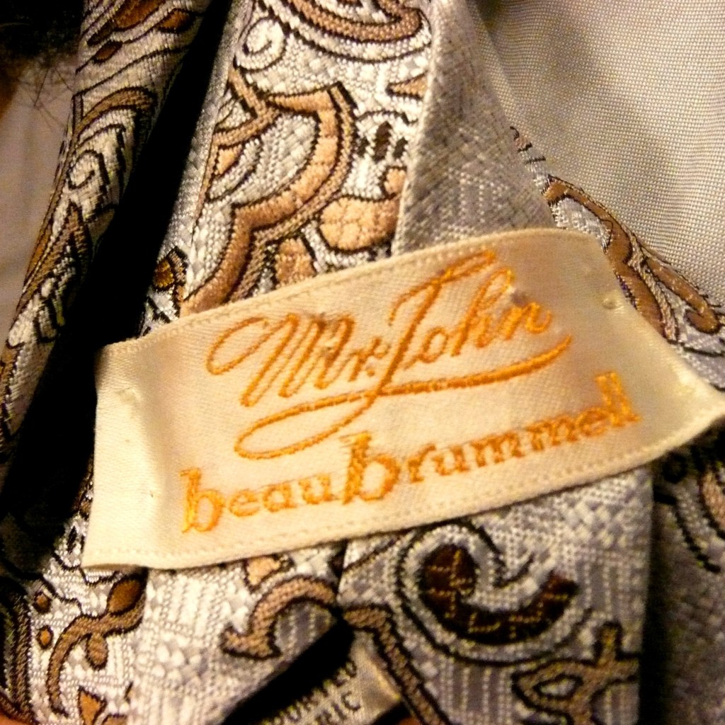 The tie…? Wow. The was a cool thing. I am not a big label queen. It is all thrifting. I pay attention to the labels to know what quality of garment is involved. And with neckties, it is almost always based on color, pattern and texture. Any labels turn up once they get home… Just like in that Billy Joel song, right? Well, you could really be a Beau Brummell baby if you just give it half a chance…