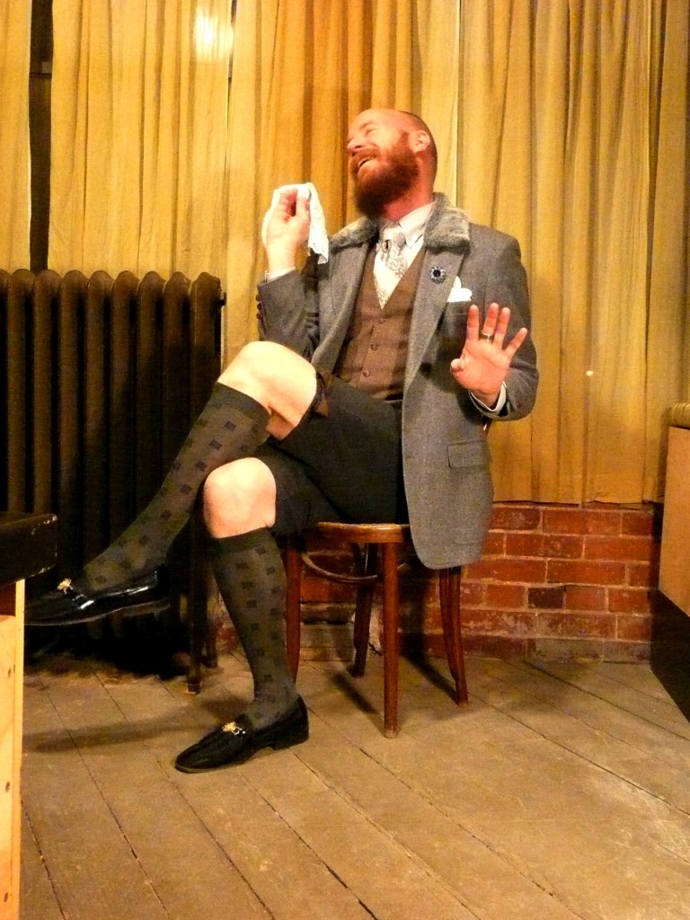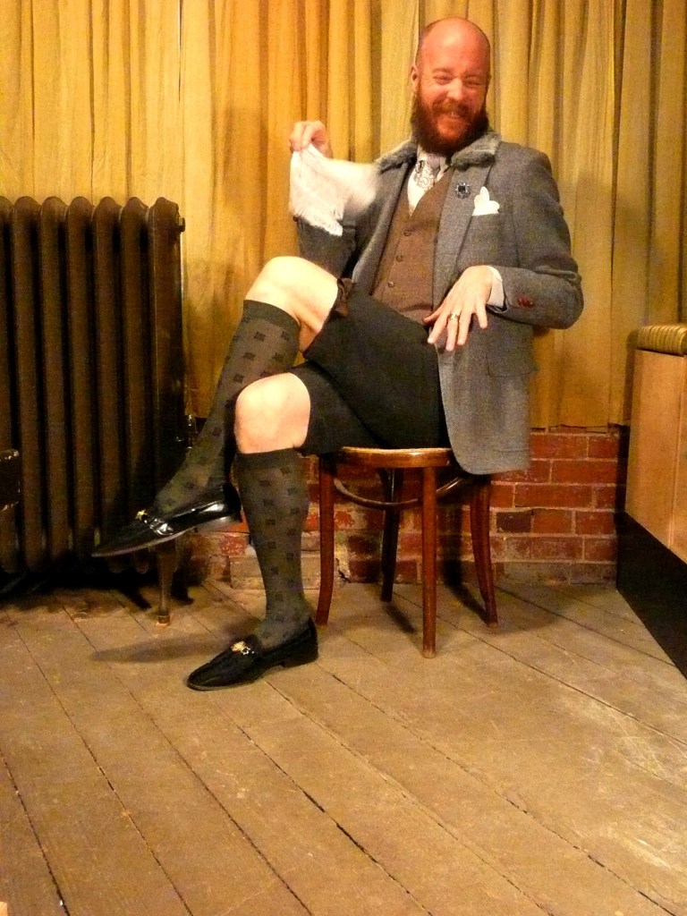 Truthfully, the knickers fail. I cut them too short and was running out of time… Still, it is what it is. I will work on something more complete as time comes along. Lace cuffs and a frilly cravat would have been lovely, but I would hate to go too far. (Wait! I heard that snicker…! Bitches!) So, one of today’s great ties and a lace handkerchief make suitable substitutes…
