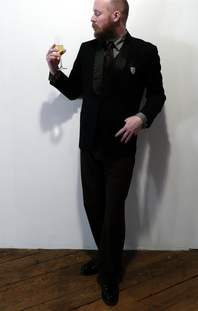 Of course, I broke out the fancy-schmancy dress, dusting off the best vintage find of last year: a classic shawl collar dinner jacket. (Yes, yes, I got it for twenty-five cents…)