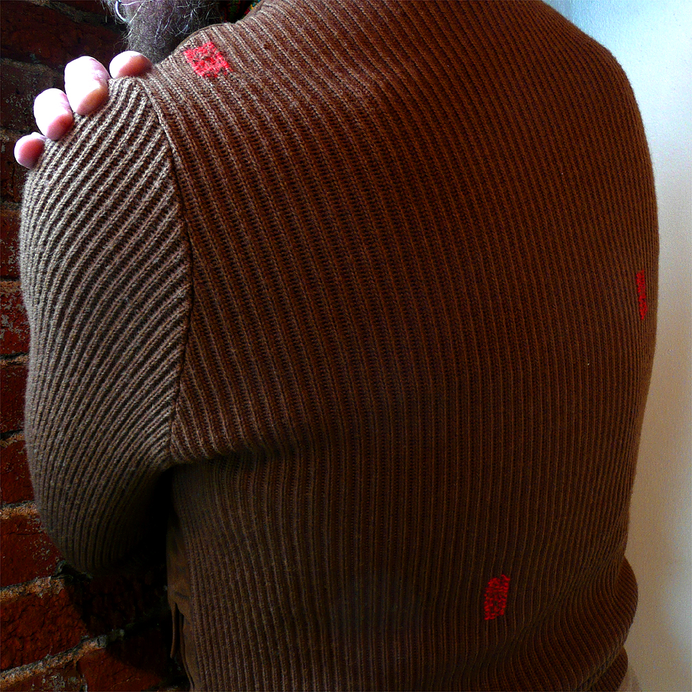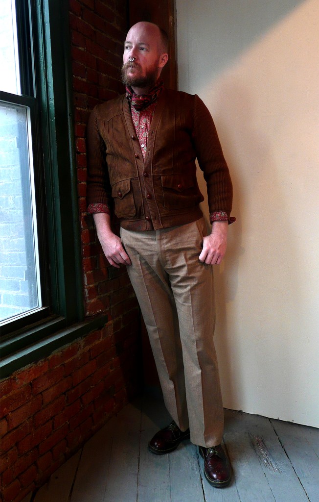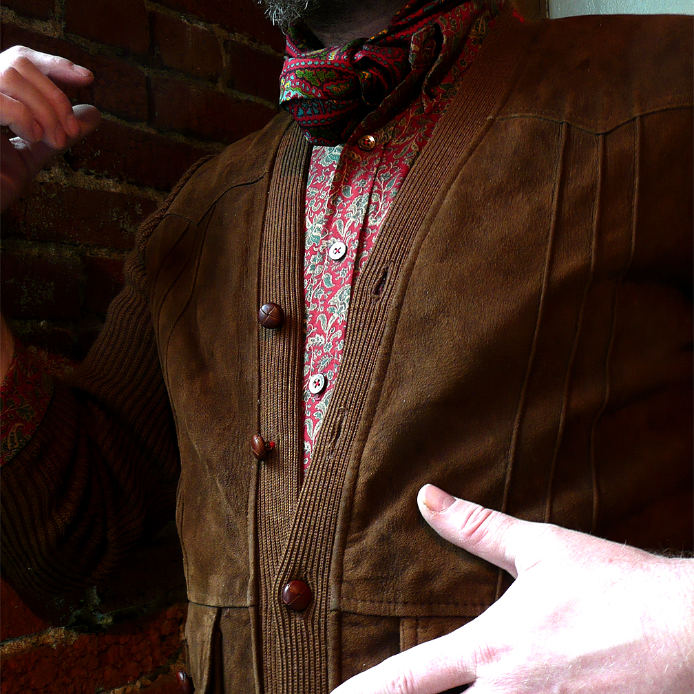 Another sweater reclaimed from moth holes and horrible plastic faux-leather buttons. This one is a Scottish-made brown wool, suede-front cardigan.